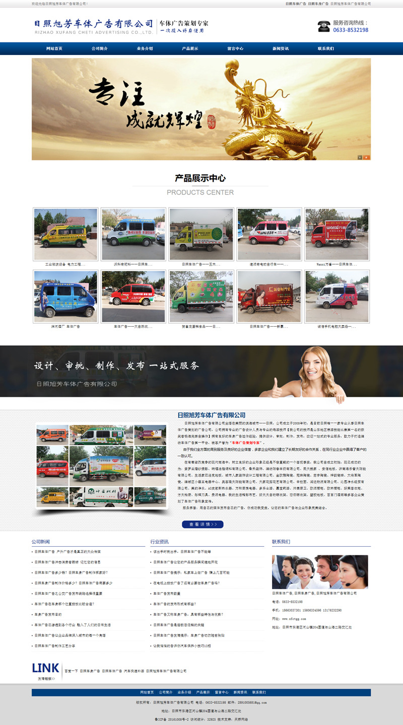 日照旭芳車體廣告有限公司坐落在美麗的濱海城市——日照,公司成立于2008年初,是目前日照唯一一家專業(yè)從事日照車體廣告策劃的廣告公司,公司擁有專業(yè)的廣告設計人員與專業(yè)的烤漆技師【我公司的技師是山東地區(qū)噴漆技能比賽第一名的獲獎者楊海亮親自操作】擁有良好的車身廣告運作經驗,提供設計、審批、制作、發(fā)布,改證一站式的專業(yè)服務,致力于打造濰坊車體廣告第一平臺,被客戶譽為“車體廣告策劃專家”。
